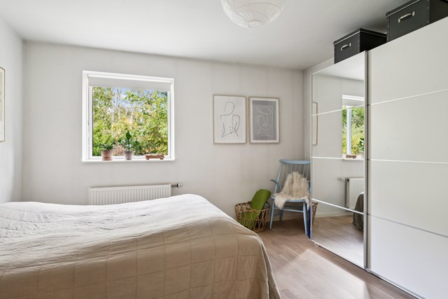 Fra stuen er der direkte udgang til den private have – en grøn oase, der indbyder til afslapning, grillhygge og rolige stunder. Haven vender ideelt for solen, og med sin ugenerte placering får man fornemmelsen af at bo midt i naturen. Der er desuden adgang via en lille flisebelagt sti gennem nabohaven, som gør det let at bevæge sig rundt.