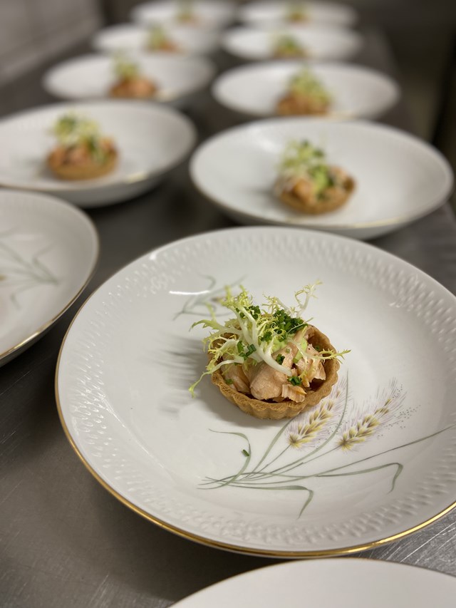 “Vi kan sørge for det hele, så du bare kan læne dig tilbage og nyde dagen. Vi har også mulighed for at levere maden hjemme hos dig, eventuelt akkompagneret af kokke, så maden bliver fulgt helt til dørs.”